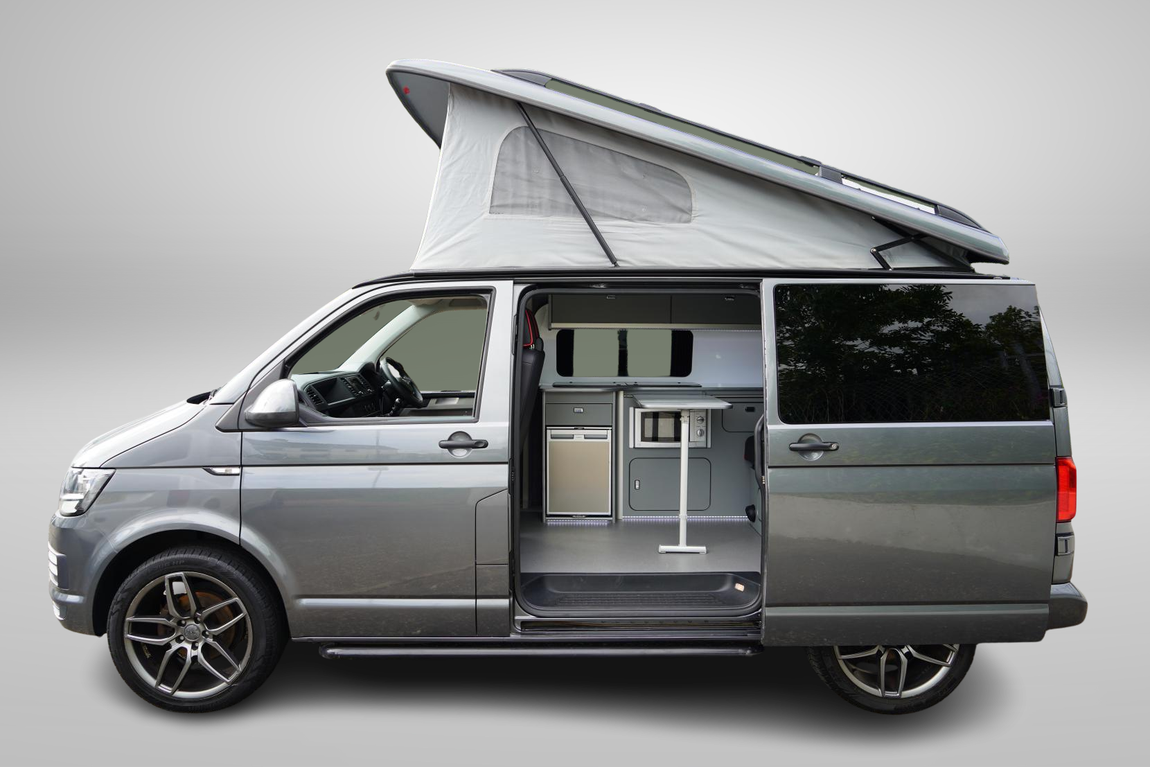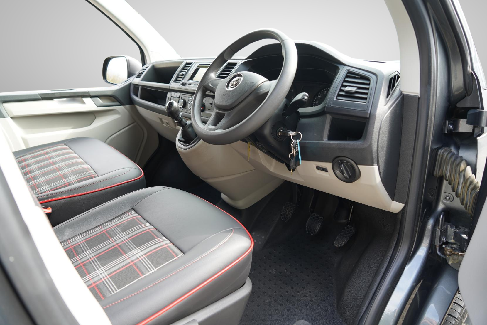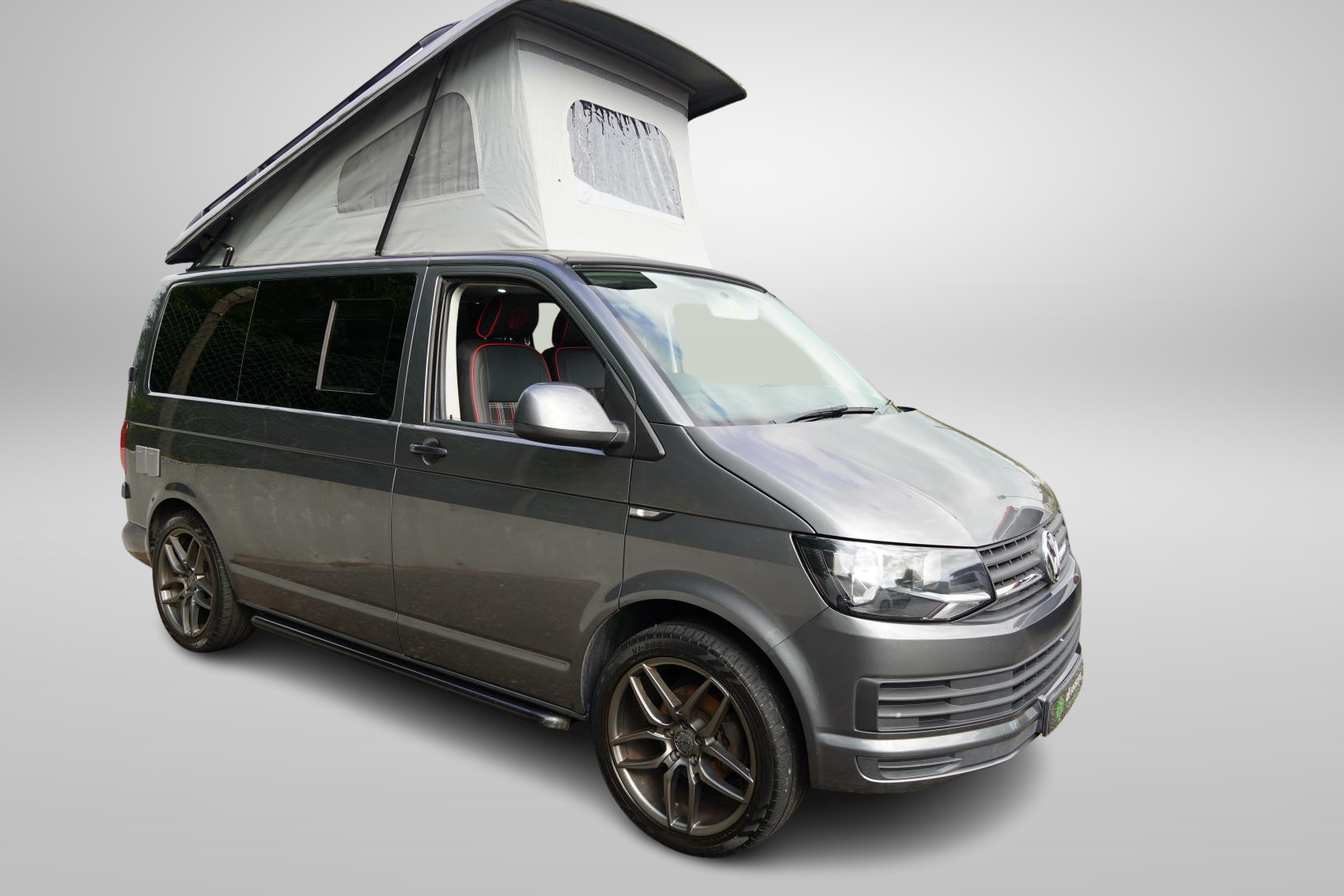 Check out this incredible short Wheel Base Volkswagen T6/ 6 speed 140bhp. Campervan for sale in our Kilmarnock showroom, finished in the gorgeous Indium grey, with black accents to finish!