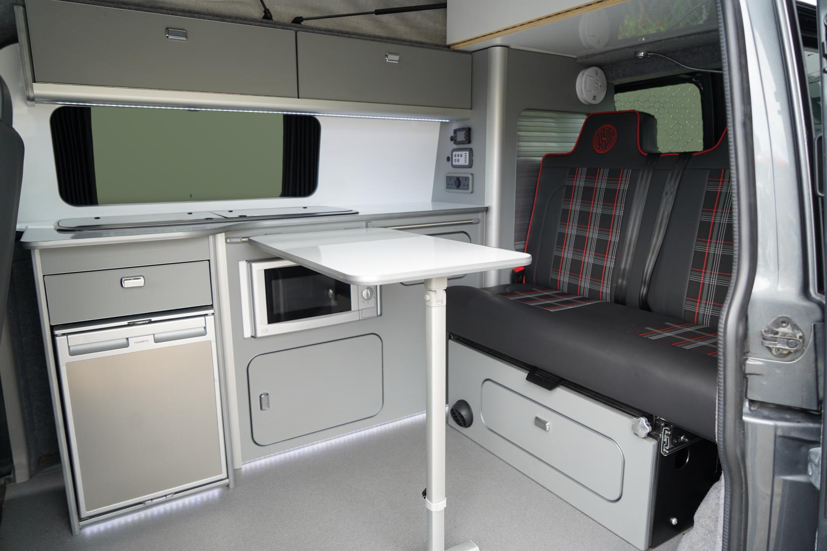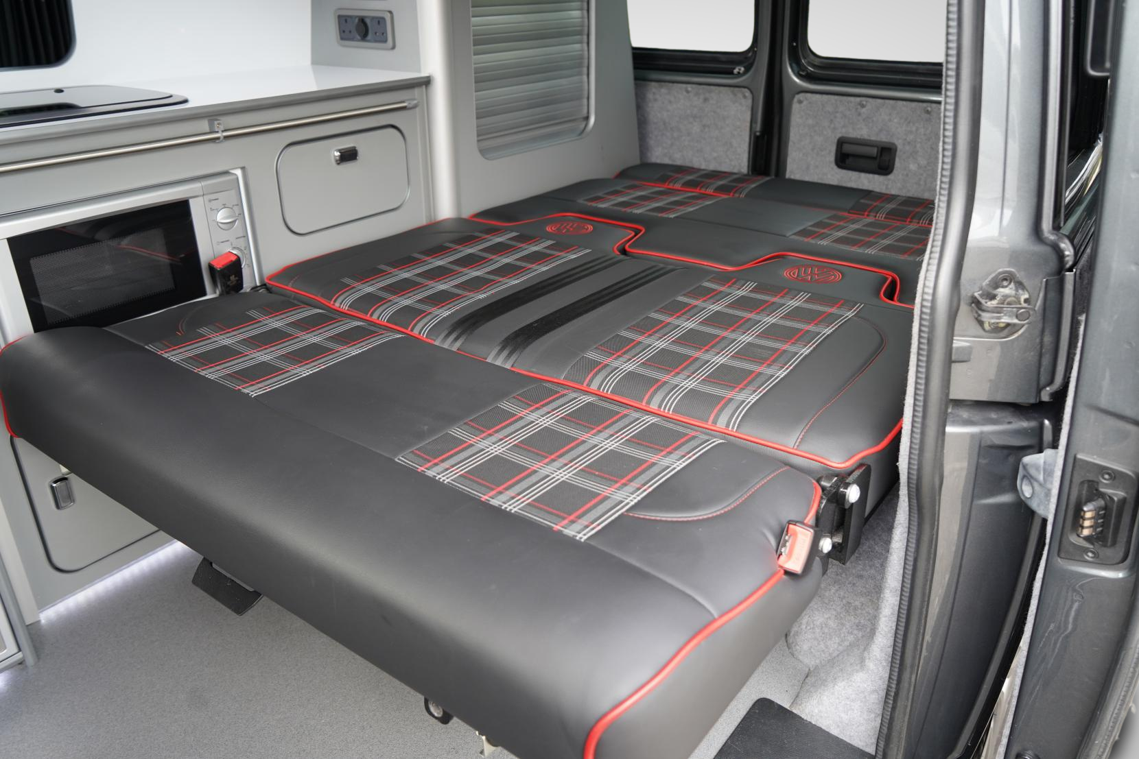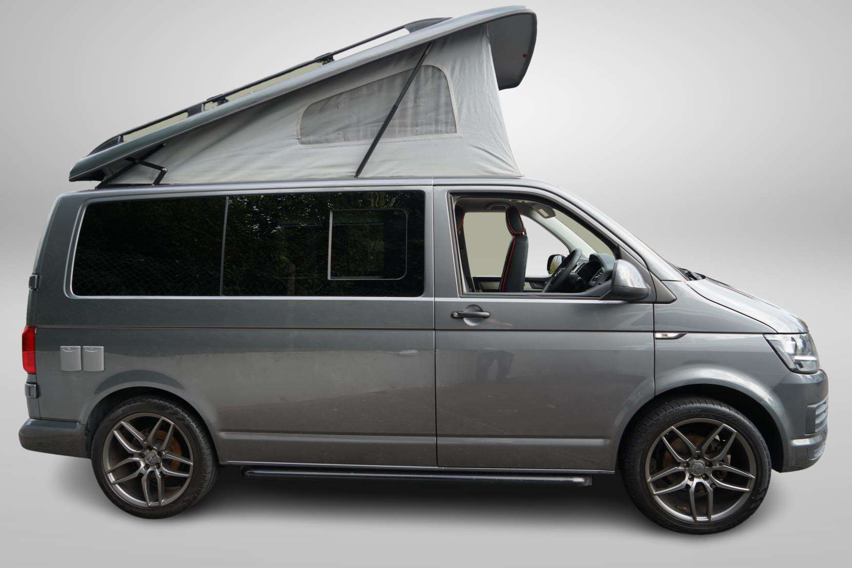 We have paired this stunning van up with some 20″ Grey alloys. We have finished this campervan off by adding a set of Black side bars, Roofrails and Multirail for awning.