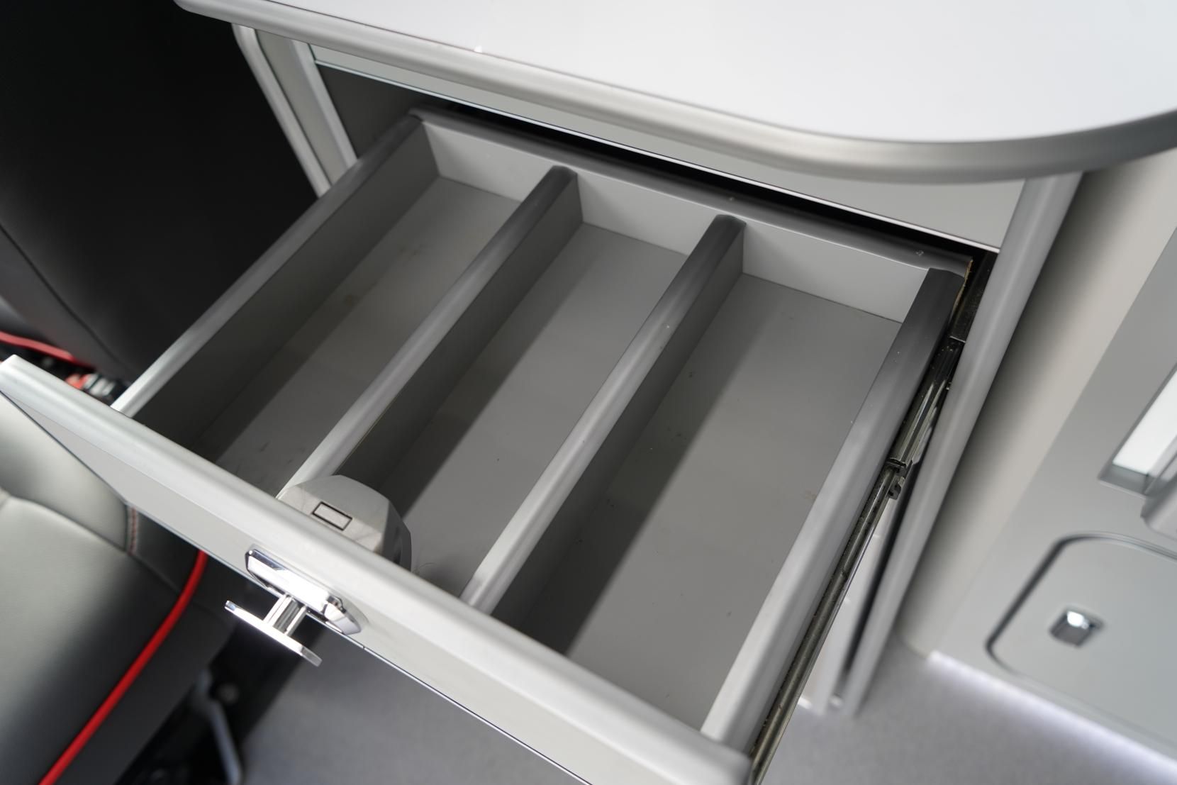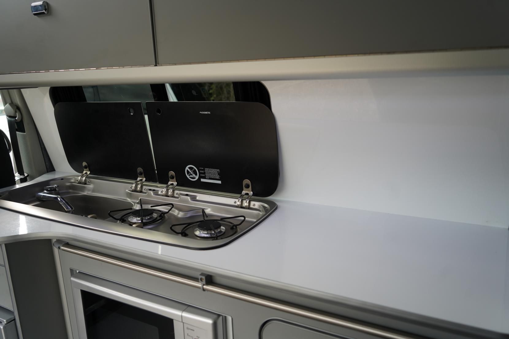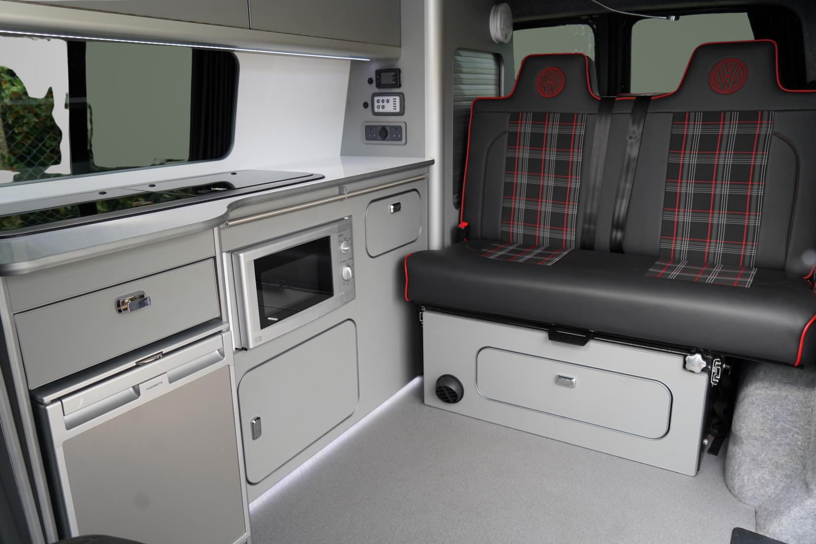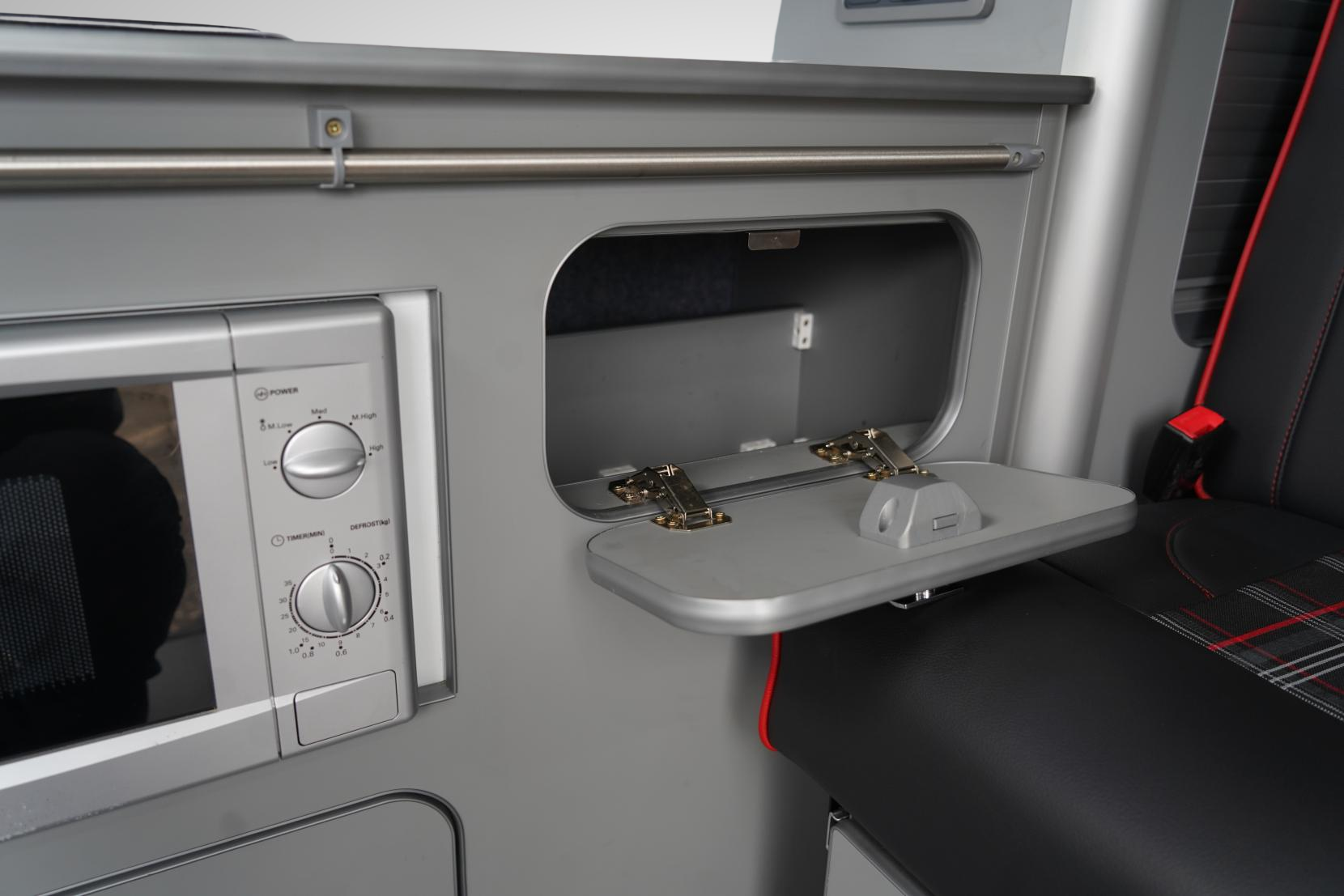 We have paired this stunning van up with some 20″ Grey alloys. We have finished this campervan off by adding a set of Black side bars, Roofrails and Multirail for awning.