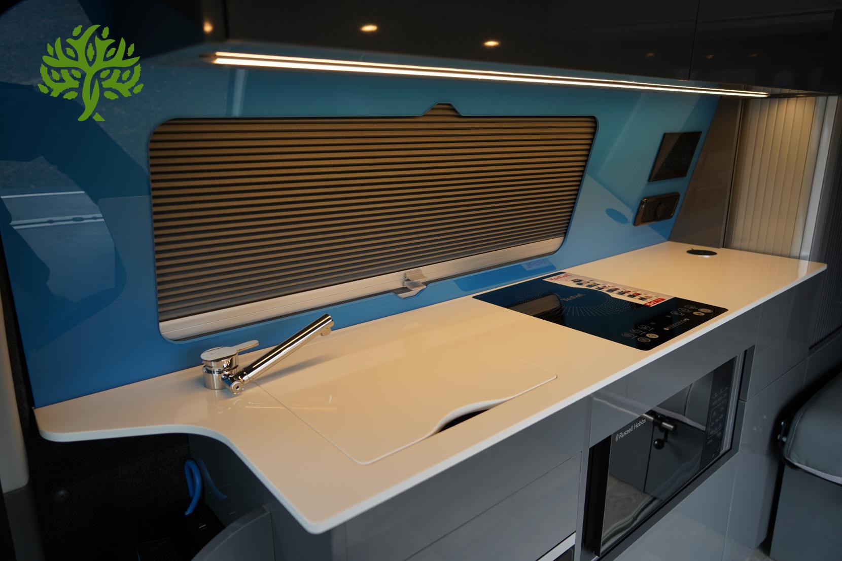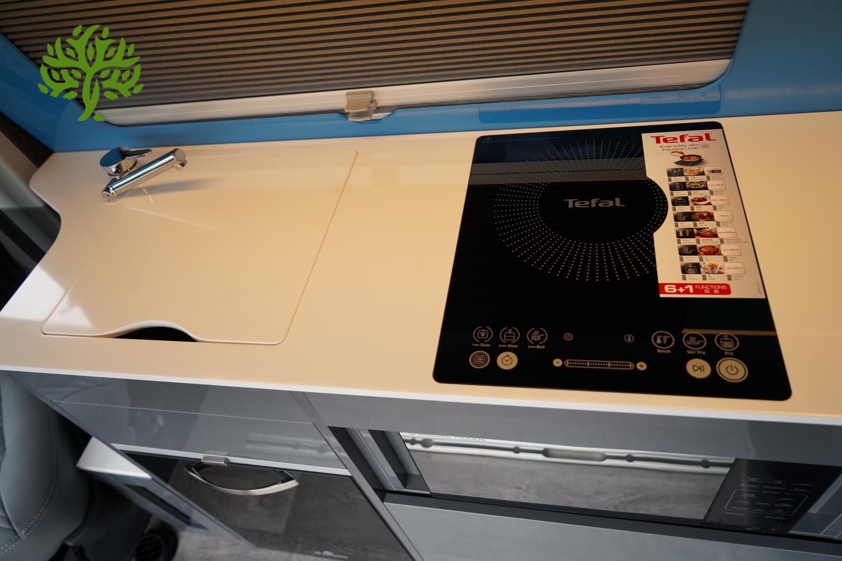 Inside, you’ll find a spacious and comfortable interior that seats up to six, complete with luxurious full leather upholstery. Whether you’re heading out for a weekend getaway or a longer road trip, the Reimo sliding bed ensures you can relax and recharge after a day of exploring. Plus, with hot water on tap, you can enjoy all the comforts of home wherever you park up.