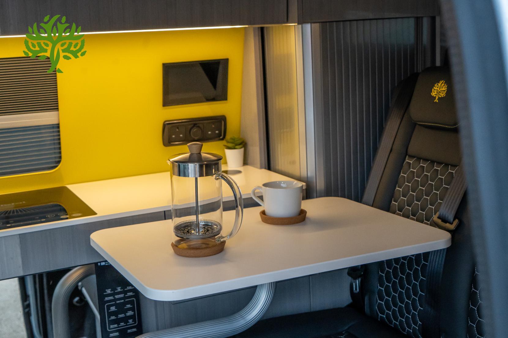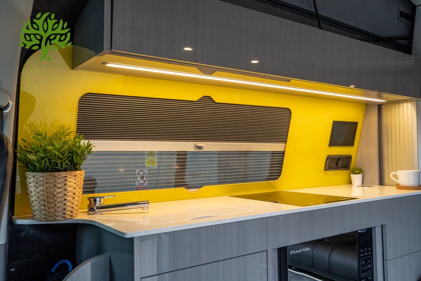 The campervan is also fitted with a robust 230Ah lithium battery and a 3,000W inverter, ensuring you have all the power you need for your adventures. The induction hob allows for convenient cooking, while the Reimo sliding bed offers flexibility and comfort for restful nights. Additionally, the hot water system enhances your camping experience, making it easy to enjoy the comforts of home wherever you go.