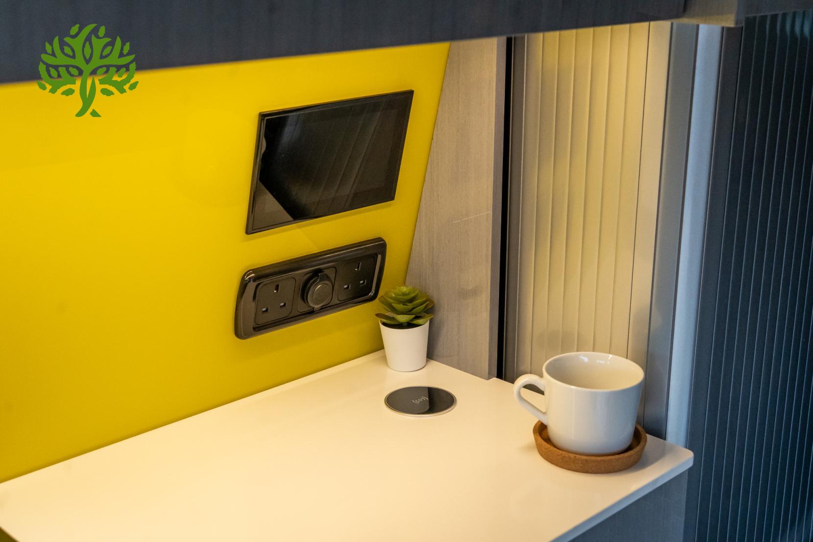 – Bespoke Corian worktop with built in sink cover & chopping board