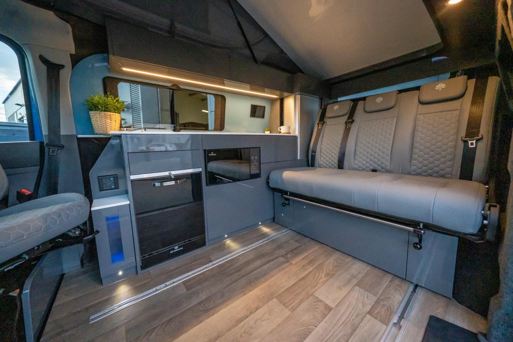 For those who love to cook on the go, the induction hob and 230Ah lithium battery paired with a 3,000W inverter make meal preparation a delight, and the Reimo sliding bed offers flexibility for sleeping arrangements. Hot water is also at your fingertips, enhancing your camping experience.