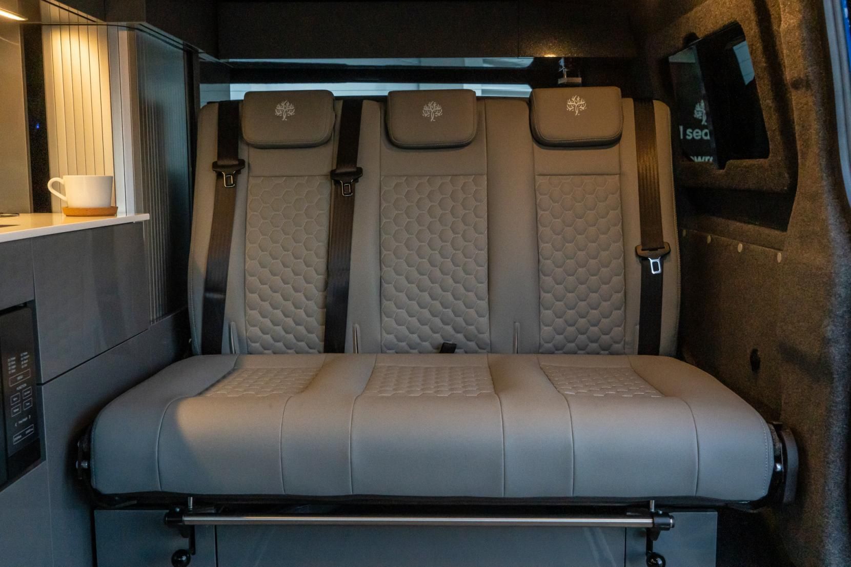 Step inside to discover a luxurious interior featuring full leather upholstery, designed for both style and comfort. The campervan is equipped with modern conveniences such as sat nav, LED lights, and a reversing camera, making every journey safe and enjoyable. Heated seats ensure you stay warm during those chilly nights, while the Reimo Easy Fit pop top provides extra headroom and sleeping space when you need it.