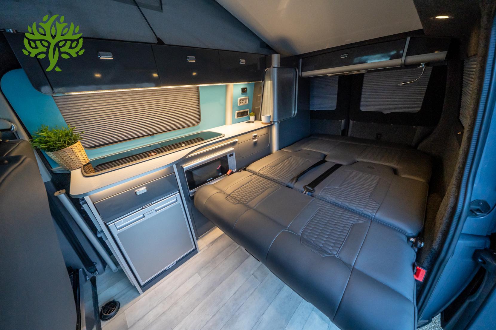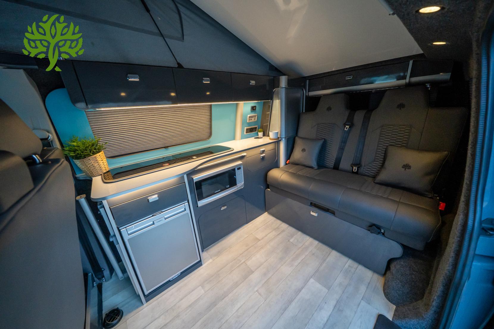 This campervan comfortably seats five, making it perfect for family trips or weekend getaways with friends. The spacious interior is adorned with full leather upholstery, adding a touch of luxury to your travels. With five doors, getting in and out is a breeze, whether you’re loading up for a weekend away or just popping out for a quick stop.