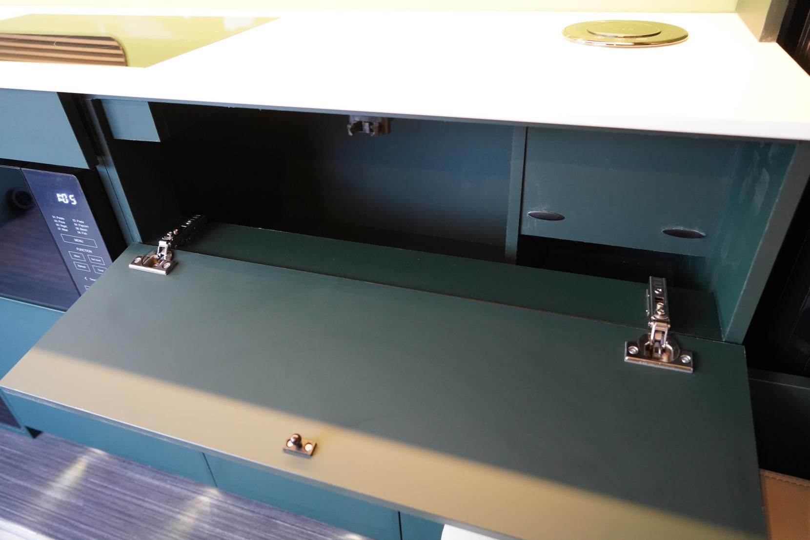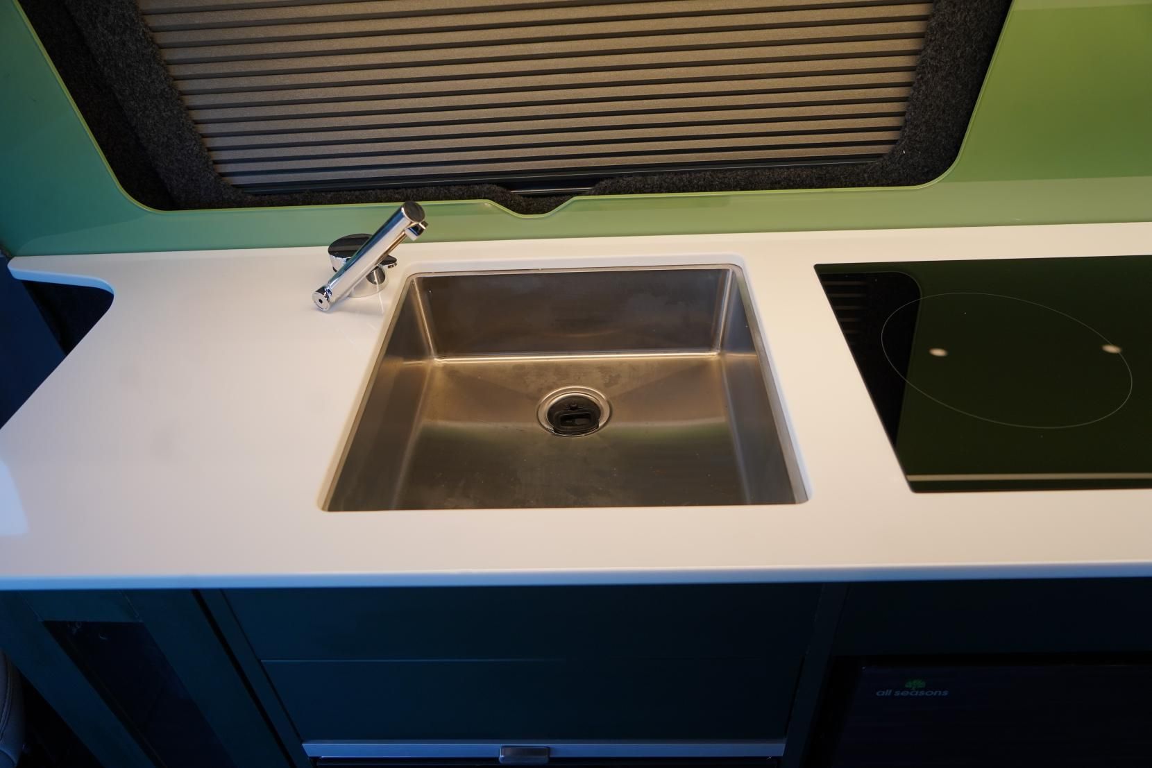 – Bespoke Corian worktop with built in sink cover & chopping board